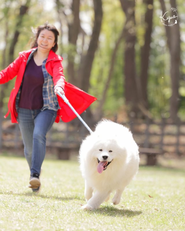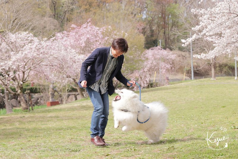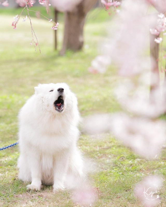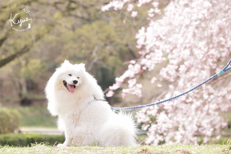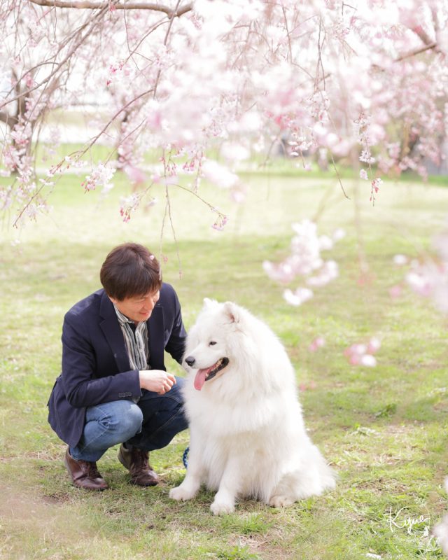 今回は桜シーズンのサモエド犬の撮影から。